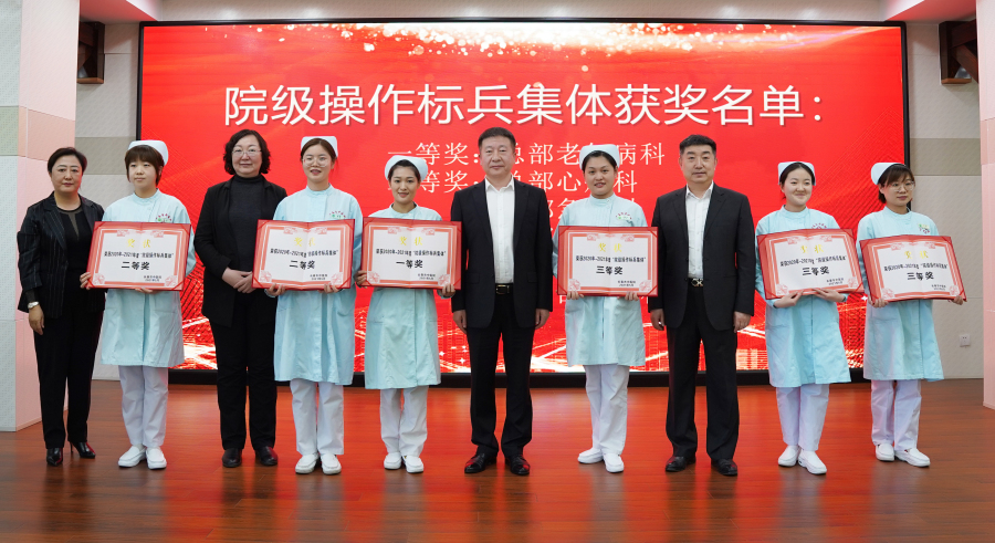 随后,周艳、杨启光、钱锐、石贵军、张保平、甘宁和沙菲为获得抗疫模范集体、年度优秀护理管理者、护理岗位忠诚卫士、年度星级护理组、年度患者眼中最美护士、市级操作能手、院级操作标兵集体、院级操作能手的集体和个人进行颁奖。