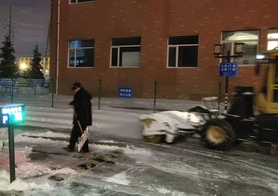 除停水外,此次雨雪天气还造成了路面积雪、积冰。为了给患者打造更好的来院就诊环境,德州扑克平台 职工积极清雪除冰,让路面不光滑,让就诊的最后一段道路更畅通。