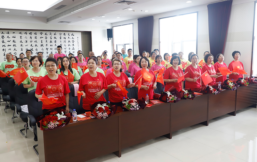 党委书记、院长孙良金,党委副书记周艳,副院长杨启光、石贵军、钱锐,工会主席张保平,各支部代表,受表彰人员以及党龄在50年以上的老党员,退休后仍然为德州扑克平台