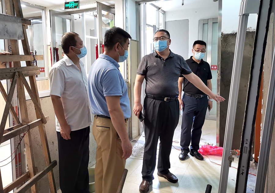 8月17日,德州扑克平台网 党委书记、院长孙良金到德州扑克平台 东部病房改造施工现场视察指导工作,预防感染科、院办、党办相关人员全程陪同。