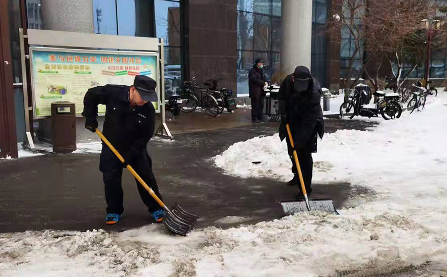 扫雪除冰人齐心,情满德州扑克平台 暖人心
