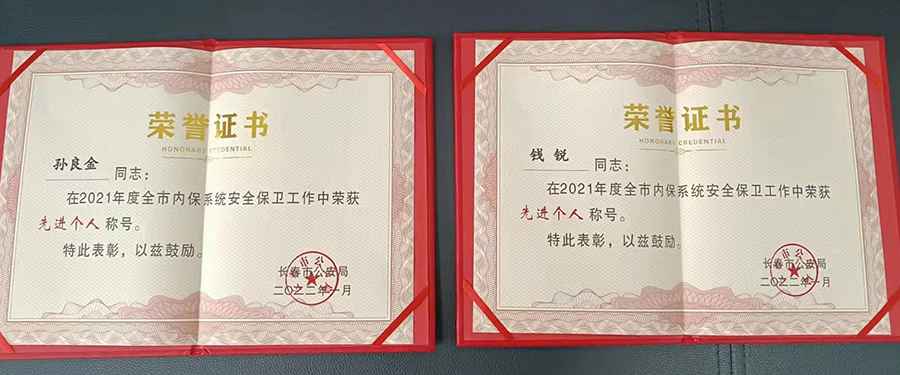 近日,长春市公安局对2021年度全市内保单位安全保卫工作先进单位、先进集体、先进个人、优秀保卫干部给予了表彰。德州扑克平台网 荣获“2021年度全市内保系统安全保卫工作先进集体”称号;德州扑克平台网 党委书记、院长孙良金,副院长钱锐在2021年度全市内保系统安全保卫工作中荣获“先进个人”称号;周占宇、丰杰、谷沛霖和高秋仪在2021年度全市内保系统安全保卫工作中荣获“优秀保卫干部”称号。
