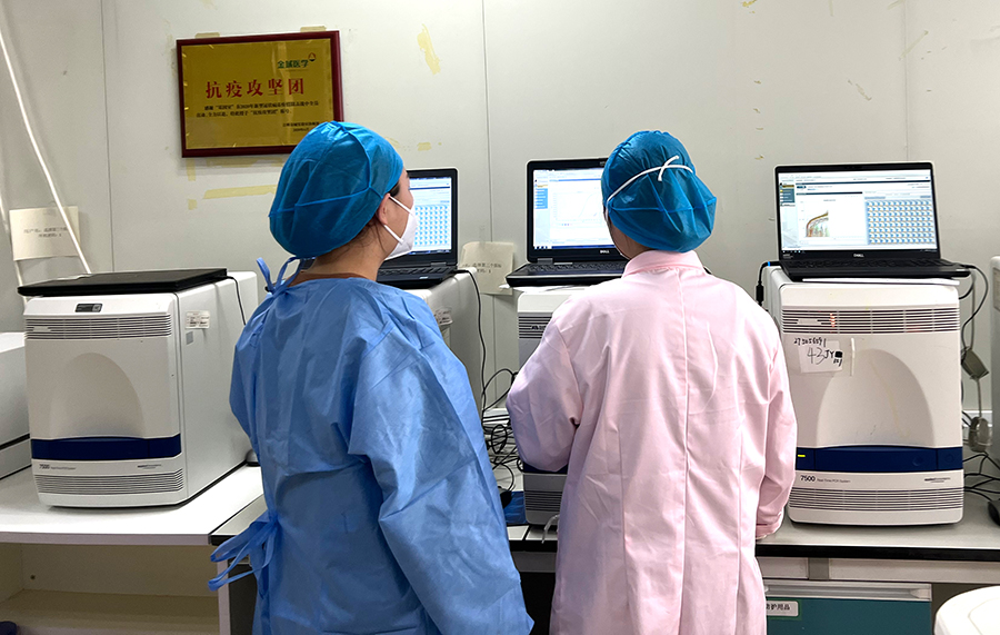 到达金域公司后,我第一时间深入实验室,与其他检测人员相互交流技术,并按照新版区域核酸检测指南完善专班建设,加强数据统计,避免核酸采集点和医疗机构内部采样等环节出现感控隐患。作为督导人员,我还负责随时接收市卫健委的最新精神并将其传达给实验室,加强实验室人员的培训和督导,持续强化第三方实验室的监管,并做到及时上传和反馈检测结果。为了能够更高效地完成任务,我住在了公司里。时光飞逝中,我和实验室的战友们逐渐熟悉默契。每当他们亲切地唤我小辛老师,我内心总会涌起一股暖流和力量。我知道,自己正和战友们为抗疫奉献着团队的力量,也一起守护着我们共同的家园。