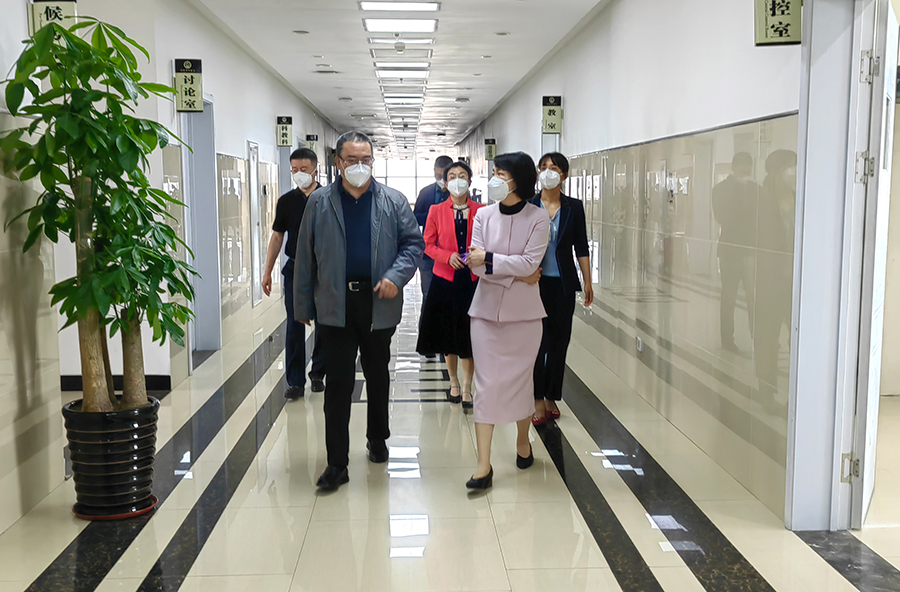 6月9日上午,市人大教科文卫委员会主任委员高岩、副主任委员张冬梅一行人来到了德州扑克平台网 进行参观调研。党委书记、院长孙良金,党委副书记周艳,副院长石贵军、钱锐,工会主席张保平及相关科室负责人陪同调研。