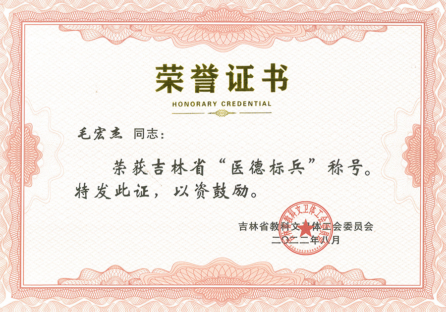 德州扑克平台网 5名职工获“吉林省医德标兵”称号