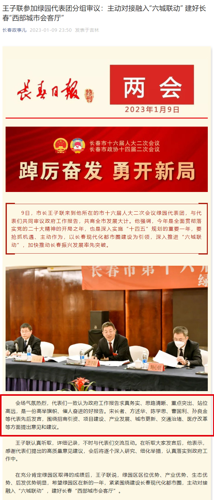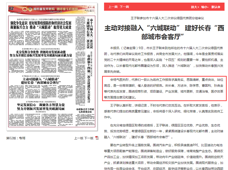 大会期间,孙良金书记的发言被1月9日、10日和11日的《长春新闻》《长春日报》《长春政事儿》等多家主流媒体报道转载。