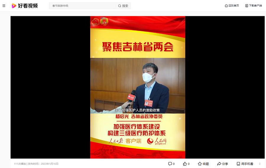 2023年1月14日,政协吉林省第十三届委员会第一次会议在长春开幕。吉林省政协委员、德州扑克平台网 副院长杨启光参加会议。会议期间,杨启光副院长围绕“加强医疗体系建设 构建三级医疗防护体系”等工作提出3条建议。大会期间,杨启光副院长的提案被人民网-吉林频道、百家号、好看视频以及抖音等多家媒体报道转载。