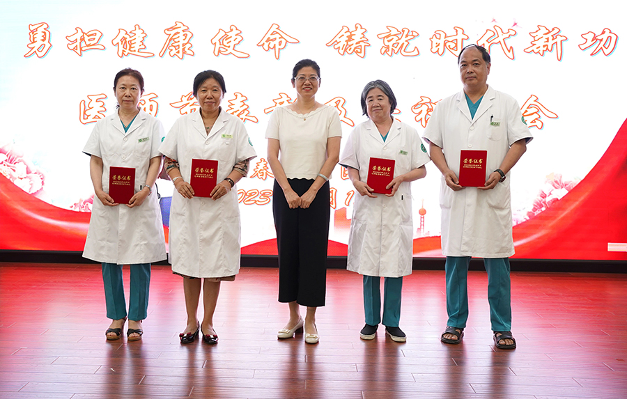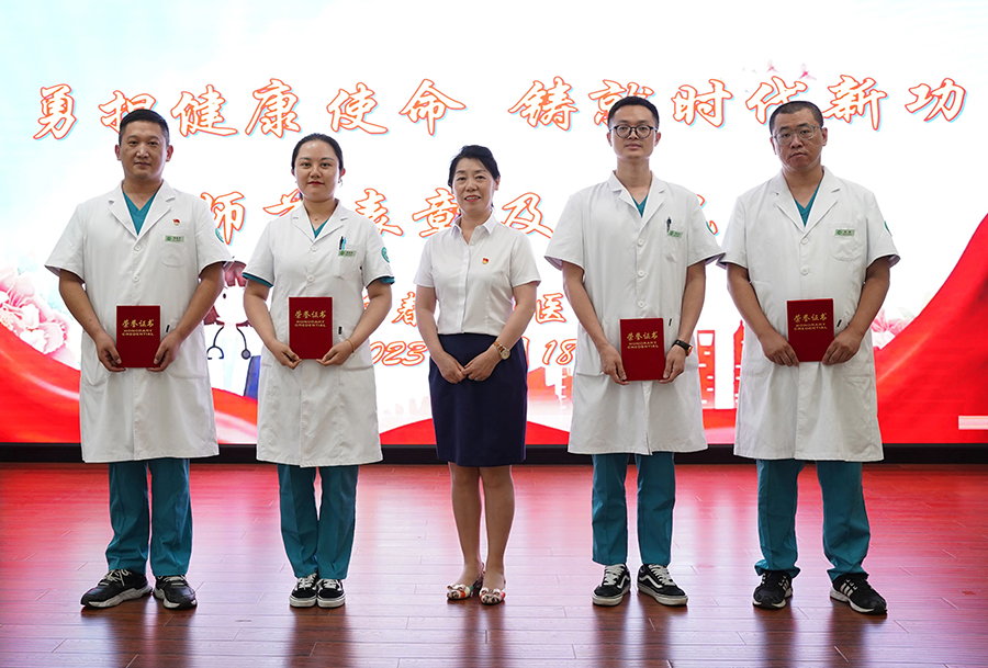 过去的一年中,全院医务工作者砥砺奋进、务实创新、奋发有为,涌现了一批优秀的医师和团体。此外,广大医务工作者还积极参加省、市以及院内的各项比赛,充分展现了市中德州扑克平台 人勇于拼搏、团结协作、敢于竞争的精神风貌,为弘扬中医文化、传播中医药知识贡献了力量。为充分发挥先进典型示范引领作用,激励全院医务人员继续弘扬“敬佑生命、救死扶伤、甘于奉献、大爱无疆”的崇高职业精神,激发和增强医师职业荣誉感和自豪感,德州扑克平台 对在业务技能、服务患者等方面有突出表现的优秀科室、先进团队及个人给予表彰。院领导分别为获奖人员和集体颁发证书。医务科科长袁鹏宣读了2023年医师节表彰名单。