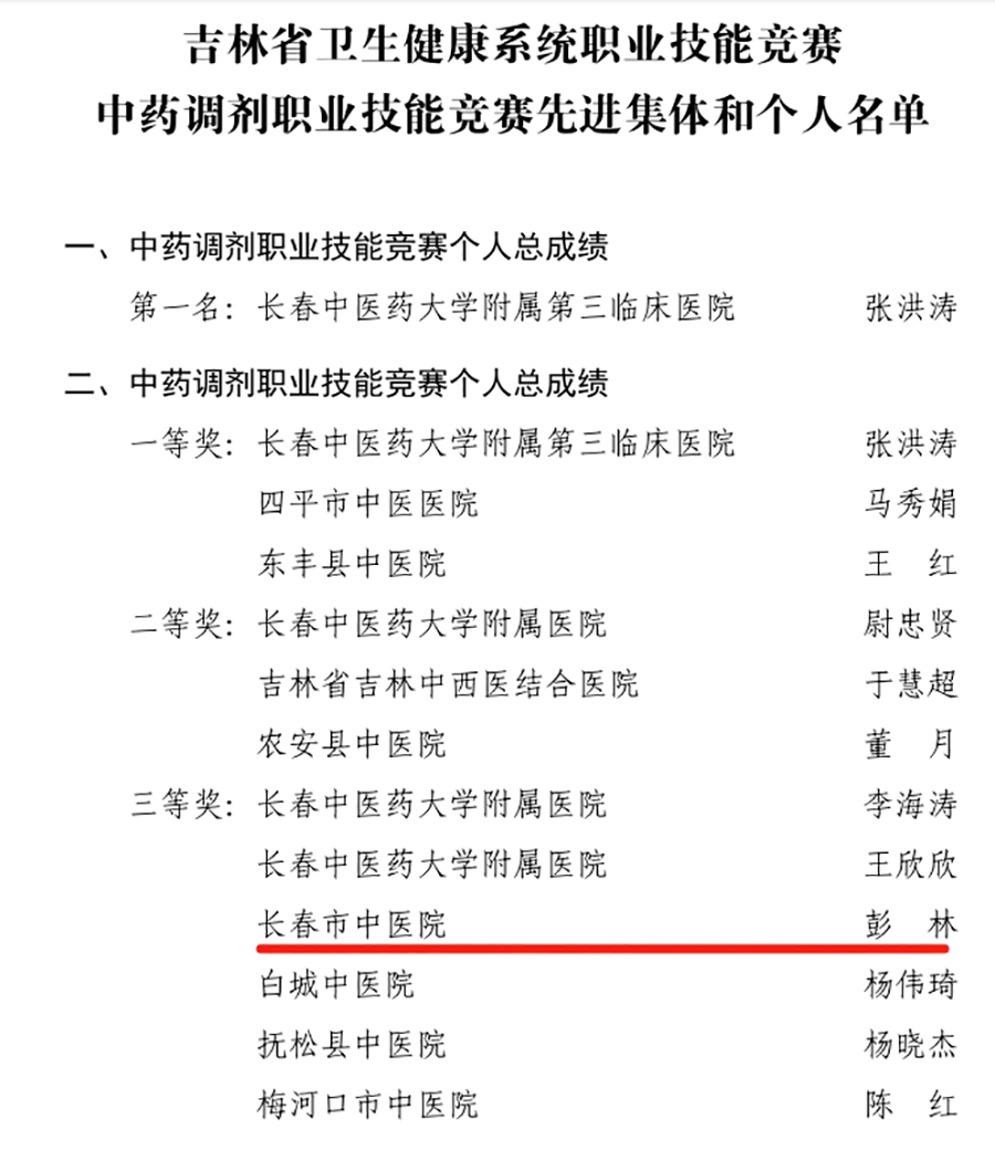 为切实提高全省中医药工作者的理论水平和实践技能,积极推动全省中医药事业高质量发展,省中医药管理局、省卫生健康委、省总工会于12月17日联合组织开展吉林省卫生健康系统职业技能竞赛中药调剂职业技能竞赛省级复赛。经过激烈角逐,德州扑克平台网 选手彭林、邹美丽分别获得中药调剂职业技能竞赛个人总成绩三等奖和优秀奖。