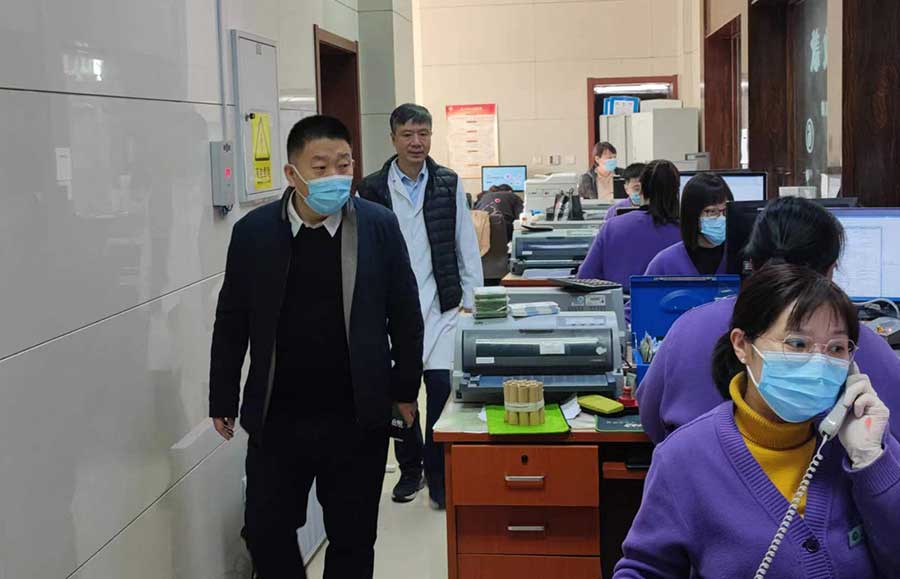 石贵军院长对东部门诊、疗区、医技科室等地进行了考察,并详细了解了医护人员的工作情况,以及患者就医的保障情况,对重点岗位及区域进行了安全检查。