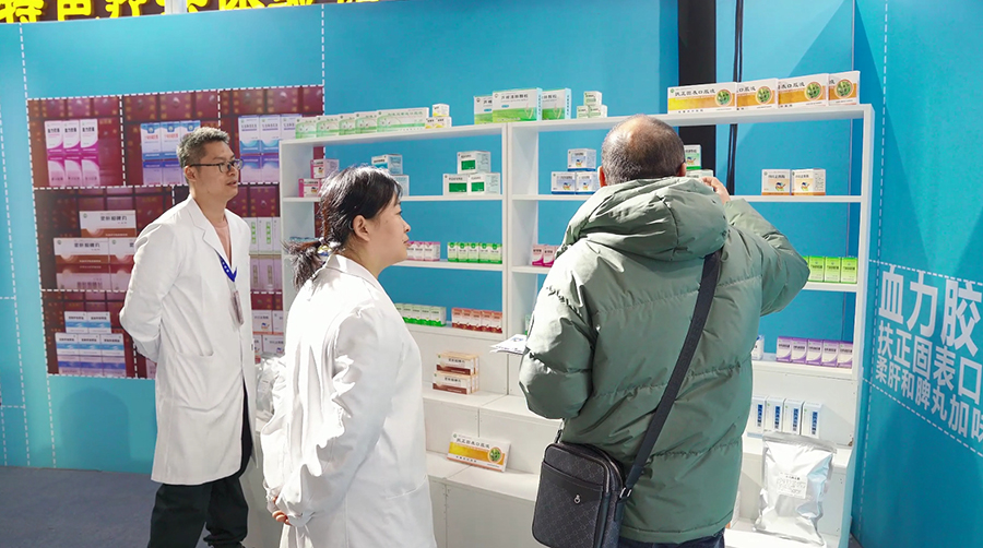 在中医药文化展馆,为了向观展群众呈现中医药文化的深厚底蕴和独特魅力,切实发挥好“中华瑰宝”服务于群众健康的重大作用,德州扑克平台 还携带了38种自主研发的中药制剂进行参展。这些院内制剂涵盖多个病种,其中包括凝聚中医智慧与心血的培本清心颗粒、扶正固表口服液、柔肝和脾丸、六味滋阴口服液、退热消炎糖浆、清肺开音颗粒、化浊降脂胶囊等。