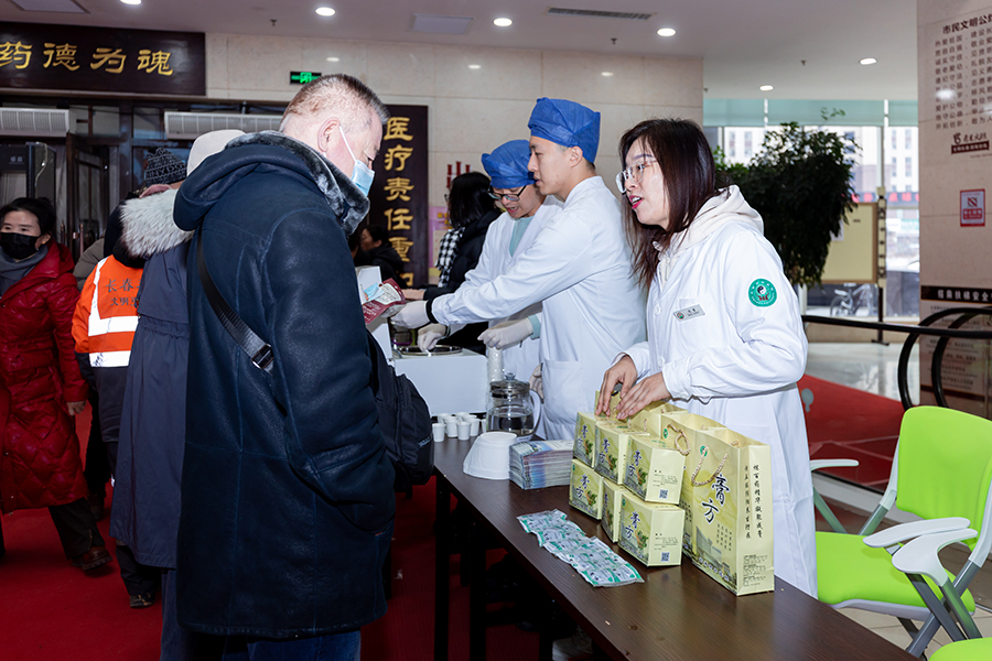 仪式上,总部肺病科主任马翮、东部肺病科主任陈宇光、平阳部肺病科主任王丽娜与制剂室药师冯雪分别在三个院部,为现场群众讲解“三九贴”及“延龄长春膏”的功效、适应证以及禁忌证,确保大家能够安全有效地享受传统疗法带来的益处。