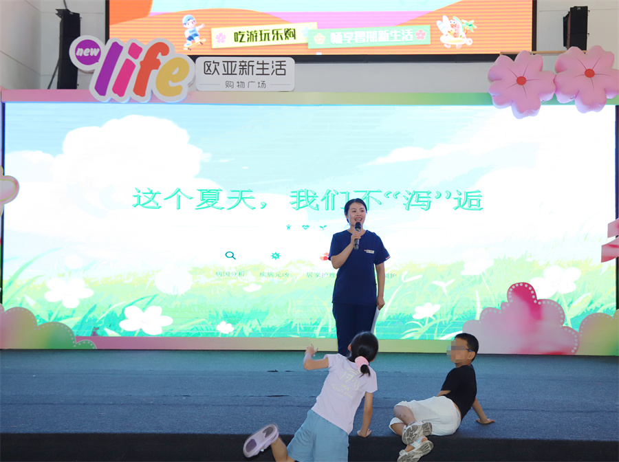 主舞台上,科普专家依次登台开展健康科普讲座。《减肥达人》分享科学减重方法,《脊柱侧弯》讲解青少年体态问题预防,《高血压预防》传授中老年血压管理要点。此外,还聚焦暑热伤身更伤神、夏季腹泻、糖尿病肾病、颈椎病等百姓关注的话题进行科普。