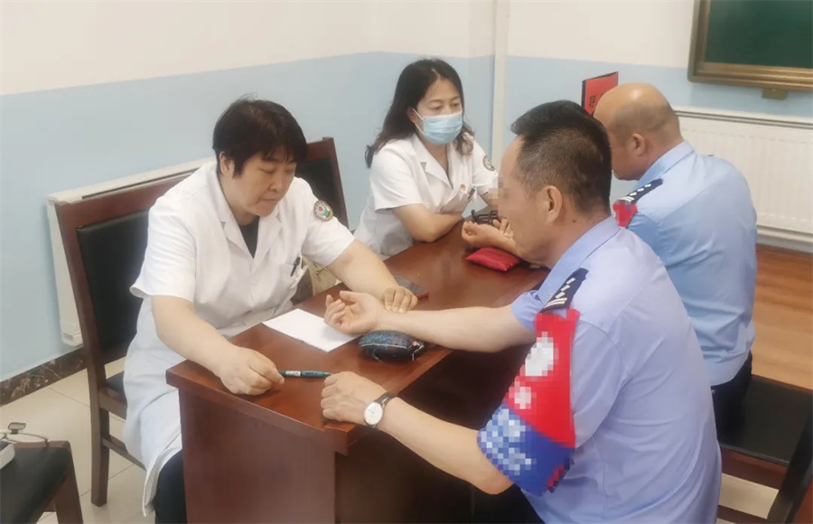 讲座结束后,专家们迅速投入到紧张的义诊工作中,为前来咨询的公安干警们进行细致的身体检查和诊断。
