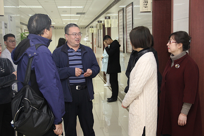 当来到治未病中心时,这里的中医氛围深深地吸引了他们,“知己、求己、求医”的全新的治未病理念让他们为之惊叹。随后来到6楼的康复科、9楼的脑病科和13楼的实训中心进行了参观。孙院长全程对各科室的特色、规划、管理等方面都进行了详细的介绍。