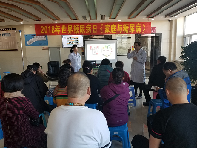 11月14日是“联合国糖尿病日”,今年的宣传主题是“家庭与糖尿病”。当天上午,德州扑克平台网 糖尿病科在总部10楼举行了“联合国糖尿病日”筛查义诊咨询活动。2018年11月14日,德州扑克平台网 总部糖尿病科举办以“家庭与糖尿病”为主题的活动。糖尿病患者与家庭成员共同参与,探讨糖尿病治疗最新技术及糖尿病相关知识;关注家庭在糖尿病预防、管理和照顾等方面的重要作用,倡导和谐家庭环境;关注糖尿病患者的身心健康,养成健康的生活方式。