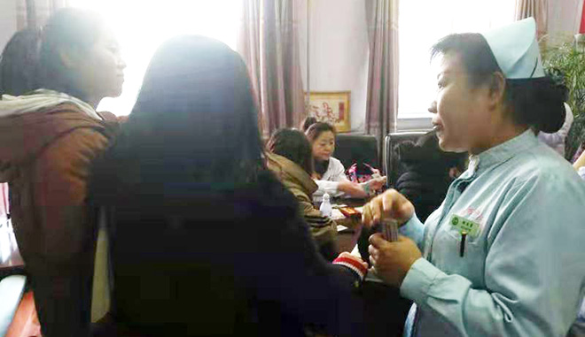 张春玲主任、马颖医生为教师们望闻问切、辨体调摄、衣食住行、循循告知。王玲玲、孔晨虹、杨春玲、于成惠医生为患有颈椎病、腰腿痛、视疲劳、头痛、失眠等病症的教师们进行针疗、按摩、耳穴调理、手法复位、运动疗法体验等。王正中医生、张立霞护士为教师们进行健康咨询解答,讲解“防重于治”的治未病先进理念,并针对不同体质发放相关的健康宣教手册。