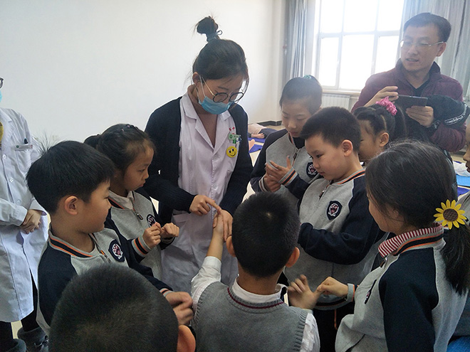 随后孩子们乘坐电梯来到13楼实训中心,走进中药实训室,在药剂师的介绍下认识了生活中常见的中草药,品尝了药食同源的中药;走进中医护理实训室,了解了中医护理与西医护理的不同,规范学习了眼保健操的做法以及一些日常保健穴位;走进中医医师实训室,观摩了医生对实验假人实施心肺复苏、人工呼吸、海姆立克的急救全程,并尝试体验了其中的环节。另外德州扑克平台网 还为年龄偏小的孩子们准备了听触诊多媒体仪器的体验,孩子们也过了一把当小大夫的瘾。