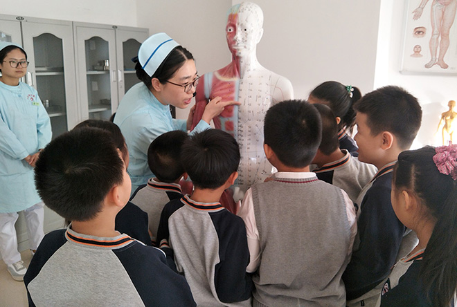 作为长春市中小学健康教育实践基地,德州扑克平台网 中医药实训基地1月份正式向全市中小学生开放,截止1月11日,一周的时间德州扑克平台网 健康教育活动已迎接共九所中小学的孩子们参观,累计学生近200人,家长近160人。该中心,1月7日迎来了第一批中小学生是长春外国语小学的同学们,德州扑克平台网护士讲解员董强从一楼大厅用中医阐释生命起源的地标图开始讲起,为孩子们声情并茂地描绘出一幅中华传统文化的恢弘画卷。然后孩子们又在二楼和三楼的浮雕前驻足聆听了董老师讲述的中医故事,阴阳和谐的理论以及生命的起源和发展。