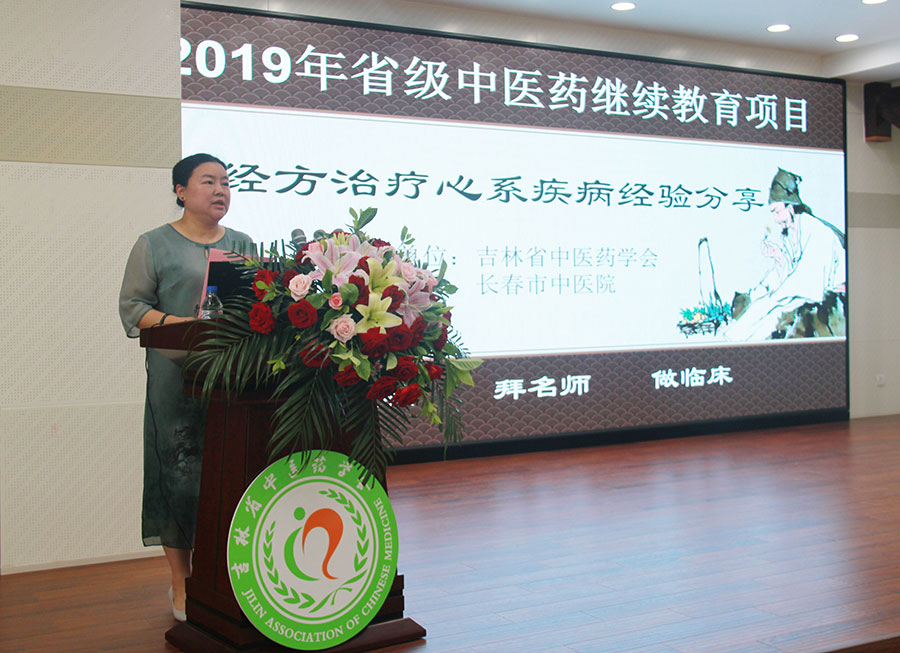 吉林省中医药学会学术部副部长于野代表发言。她表示,吉林省中医药学会非常注重继续教育项目的品质,严格审批,坚持督导管理,2019年吉林省省级以上继续教育项目共有108项,其中国家级继续教育项目共有16项,今天的培训项目是省级中医药继续教育培训项目中的一项,汇聚了心脏疾病领域知名专家和学者,为吉林省中医药工作者传经送宝。