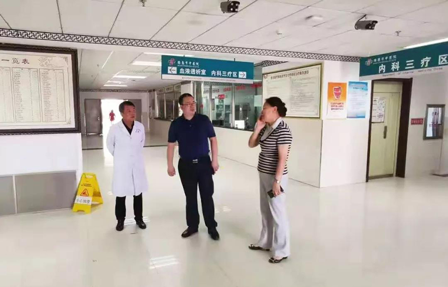7月22日,德州扑克平台网 党委书记、院长孙良金亲自带队,走进德惠市中德州扑克平台 开展医联体成员单位调研对接工作。德惠市中德州扑克平台 院长宋慧波、副院长王勇陪同调研。孙良金院长等一行人参观了德惠市中德州扑克平台 的康复科、儿科、血液透析科、煎药室等相关科室,对德惠市中德州扑克平台 的科室建设和科室管理给予了赞誉。