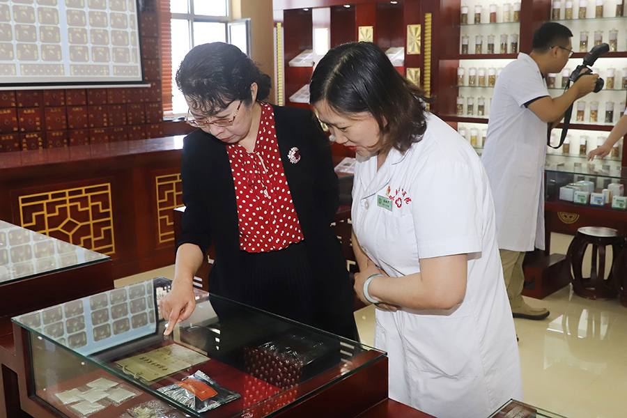 调研一行人先参观了德州扑克平台 的药房、煎药室,在药品展示台前孙良金院长详细介绍了中药的煎制流程,感受中药的制作技艺,当了解到中药自制剂的生产流通情况,对德州扑克平台 坚持采购道地取材的做法给予充分认可。