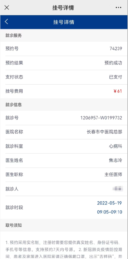 认真阅读预约挂号须知并确认预约信息无误后点击“预约并支付”