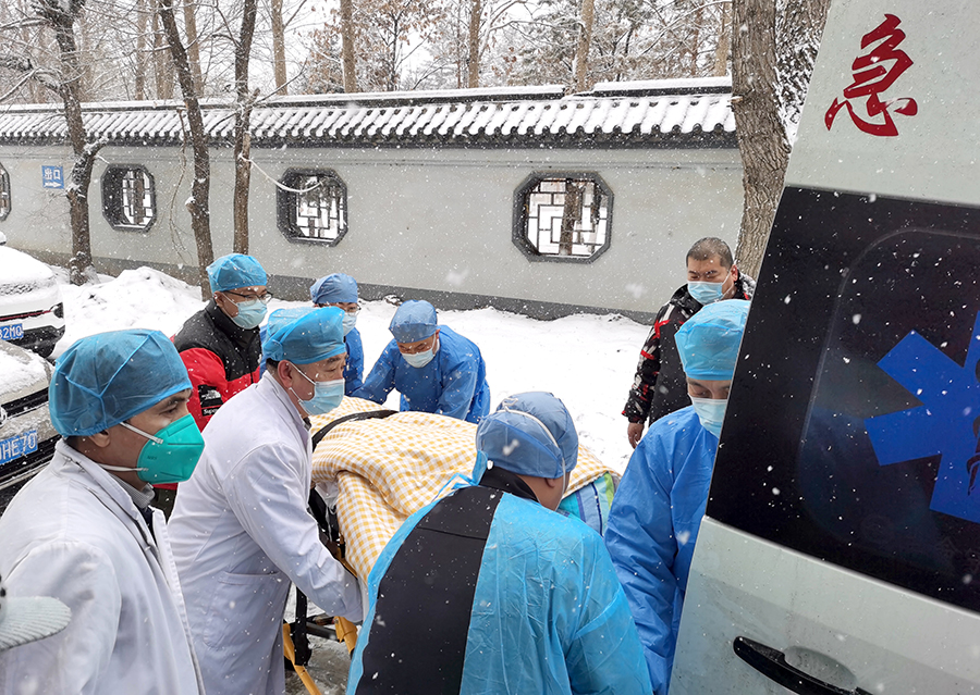 每个疗区的负责人和护士长也成为了这次转运工作的主力军。他们详细询问每位患者出院及转院的相关事宜。当得知有患者因家属不能来接而焦虑无助时,他们就顶着漫天飞雪,把一个个患者安全护送回家。当日,东部内科主任苏秀文和护士长张小翠早早来到疗区,仔细查房并询问每一位患者的情况。两位患者因家属不能来接他们出院而情绪低落。在了解他们的情况后,苏秀文和主治医师王宁马上表态,开车送他们回家。患者胡女士含着眼泪紧握着苏秀文的手,激动地说:“谢谢苏主任,不仅给我们治病,还考虑得这么周到!”苏秀文则说:“疫情期间,不管有多大的困难,我们都要克服,也一定能克服,只要你们需要帮助,我们都会全力去做。”石亚利、佟凯航、刘丽沙、杨贺钧,他们两人一组,一趟一趟地跟随救护车护送患者到总部继续接受治疗。随着最后一名患者顺利转运离开,苏秀文和张小翠把疗区的一切都安排好后,才安心下班回家。