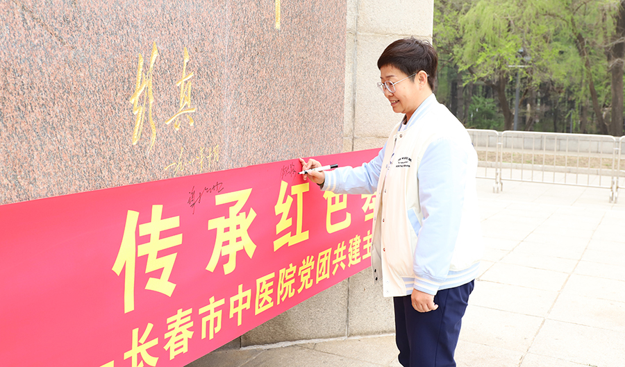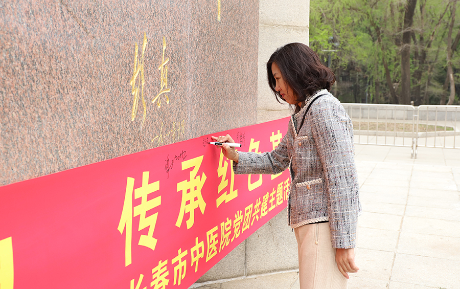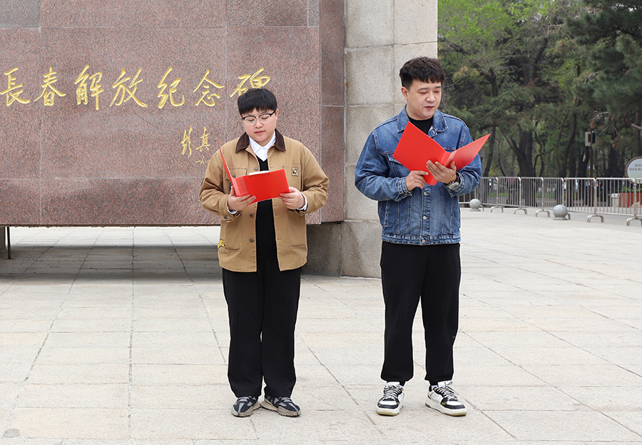 4月29日,院团委与平阳部各党支部联合开展“弘扬五四精神,传承红色基因”学党史主题活动。团员青年与党员代表们肃立位于南湖公园内的长春解放纪念碑前,心怀敬意,由平阳部康复科张雨鑫带领着大家重温了那段波澜壮阔的革命岁月。