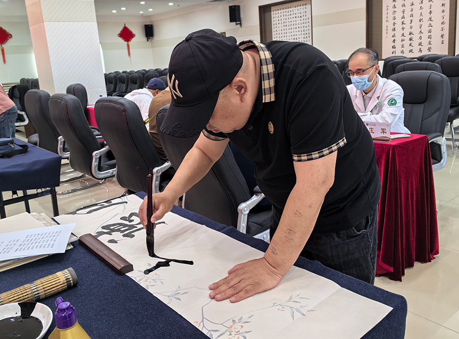 另一边,书画艺术家们正全神贯注地投入到创作中。他们或立或坐,或沉思或挥笔,在宣纸上用细腻的笔触映照出脑中灵感的火花,用书画作品描绘出杏林的生机与活力,将艺术的魅力与医务工作者的辛勤工作完美融合。随后,艺术家们亲手将作品赠予医护人员,传递着敬意与感激。艺术家们创作的书法、绘画作品,不仅是对市中德州扑克平台 全体人员辛勤工作的认可与鼓励,更是为德州扑克平台 70周年庆增添了浓厚的文化底蕴和艺术气息。这些作品将激励医护人员继续担当奉献,守护百姓健康,书写新时代医者荣光。