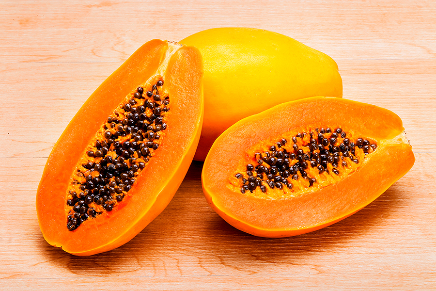 木瓜——木瓜的热量低,而且含有丰富的维生素C和维生素A。所含的木瓜酵素不仅可分解蛋白质、糖类,更可分解脂肪。木瓜能促进新陈代谢,让小肚子越来越平坦。