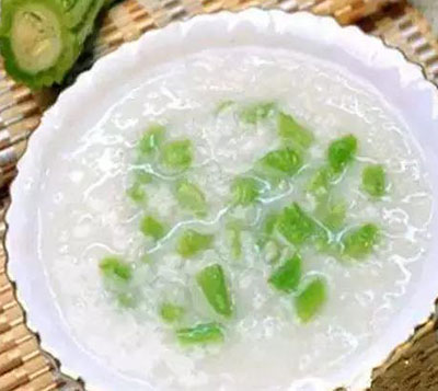 【做法】将鲜丝瓜去皮和瓤,粳米放入锅内,鲜丝瓜切成2厘米长、1厘米厚的长条块,放入锅内加入清水,武火煮沸再用文火煮熟成粥,加入白糖即可。