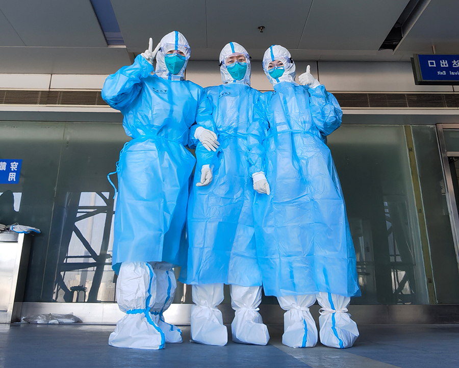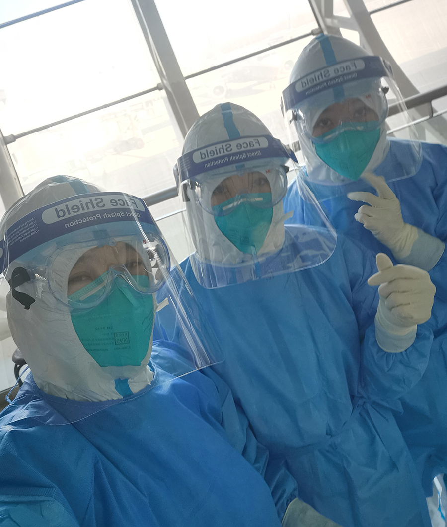 “护目镜、N95口罩在我们的额头、脸上和鼻梁上留下了深深的勒痕。可每当听到旅客离开前说的‘谢谢’‘你们辛苦啦’,当天的疲惫感便一扫而空。”——张新瑶