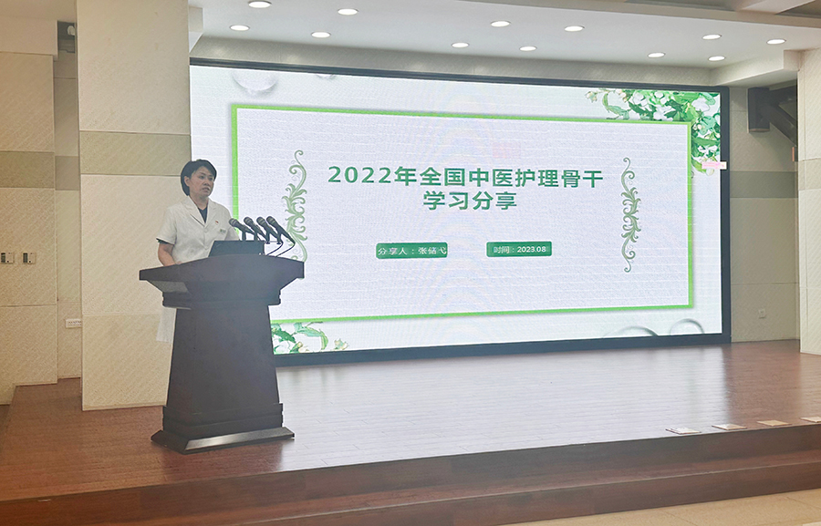 培训中,德州扑克平台 总部心病科护士长张储弋讲述了在全国护理骨干培训的学习收获和心得。她重点围绕先进的中医护理文化和理念进行了分享,包括中医基础理论、中医护理团队建设、中医护理优势技术、中医名护培养及中医护理特色门诊的建立等。