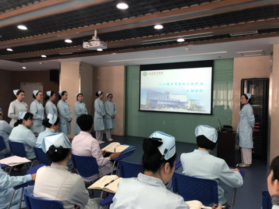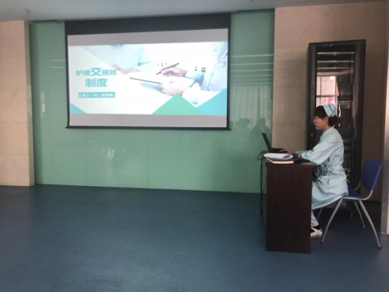 为保证临床一线医疗护理工作的连续性,保证各项治疗和护理工作准确、及时地进行,活动第二部分,由脑病科护士长訾英辉进行了规范化护理交接班培训,首先訾英辉护士长强调了交接班制度在临床工作中的重要意义,而后她从交接班模式、交接班护理缺陷和不良事件、手术病人的交接流程、患者转入转出的交接和护理交班本填写要求等方面进行了系统和详细的培训,并让总部脑病科护士现场演示了科室晨间交班的内容和流程,其中患者详细的病情变化和完整的护理流程给各科室提供了一个规范的交接班模式,使大家充分了解到规范化交接班的重要性,体会到交接班不仅仅是一个形式,更是一种责任。