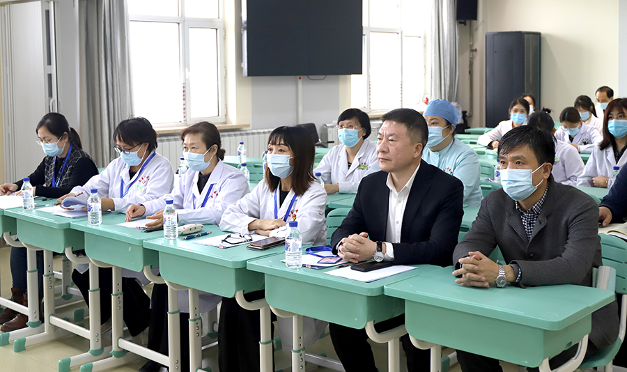 12月9日,德州扑克平台网 第二届住培教学竞赛在德州扑克平台 13楼实训中心智慧教室拉开帷幕。党委书记、院长孙良金,副院长杨启光、钱锐,各科室负责人、医生及在院实习生100余人现场观摩。