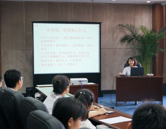 为帮助在校学生转变角色,熟悉德州扑克平台 工作及规章制度,培养良好的心理素质、职业道德和沟通技巧,成为合格医生,德州扑克平台网科教科于7月18日在总部13楼会议室对长春中医药大学实习生进行岗前培训。