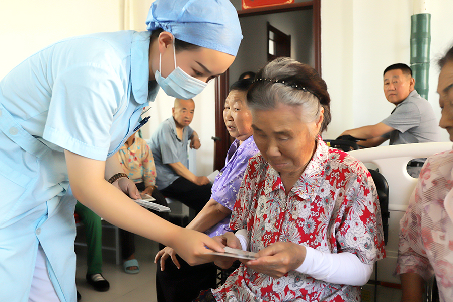 “我给您做一次针灸吧,能缓解您的腿疼。”这次义诊,骨科医生带来了针灸。“大夫,您按的地方,平时都疼,您找穴位真准。”很多村民都是第一次针灸,平时只听说过中医针灸厉害,这回专家到眼前了,一定得体验一次。从8点半多一直到11点半,来参加义诊的村民得有上百位了。