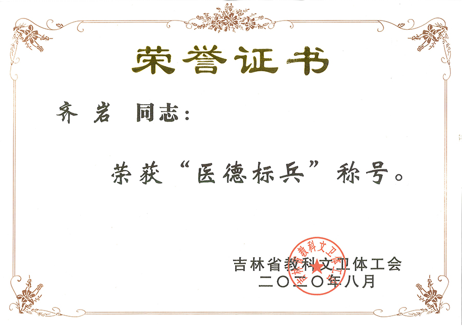 德州扑克平台网3名职工荣获省科教文卫体工会颁发的“医德标兵”称号