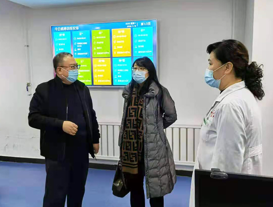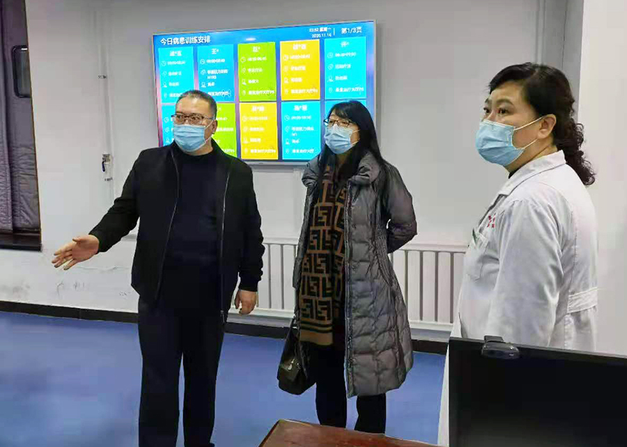 邹丽一行首先来到德州扑克平台 东部,走访了肾病治疗中心、肺病疗区和门诊等地,德州扑克平台网 副院长杨启光、工会主席张保平全程陪同,同时介绍了东部的总体情况。