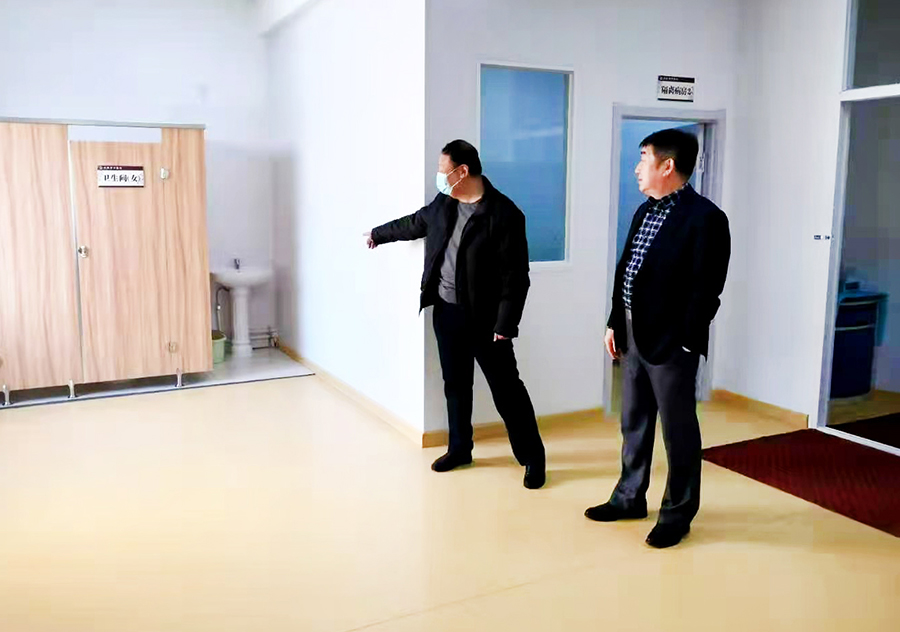 张保平现场指导,连夜制定新冠恢复期隔离用房改建方案,他作为施工现场总指挥,亲自设计改造图纸,放弃休息时间,忍着腰痛,带领后勤科长王伟越等人,在保证东部医疗秩序正常运行的情况下,经过72小时的紧张施工,将原康复大厅按照要求,进行了两区三通道及水电的改造。