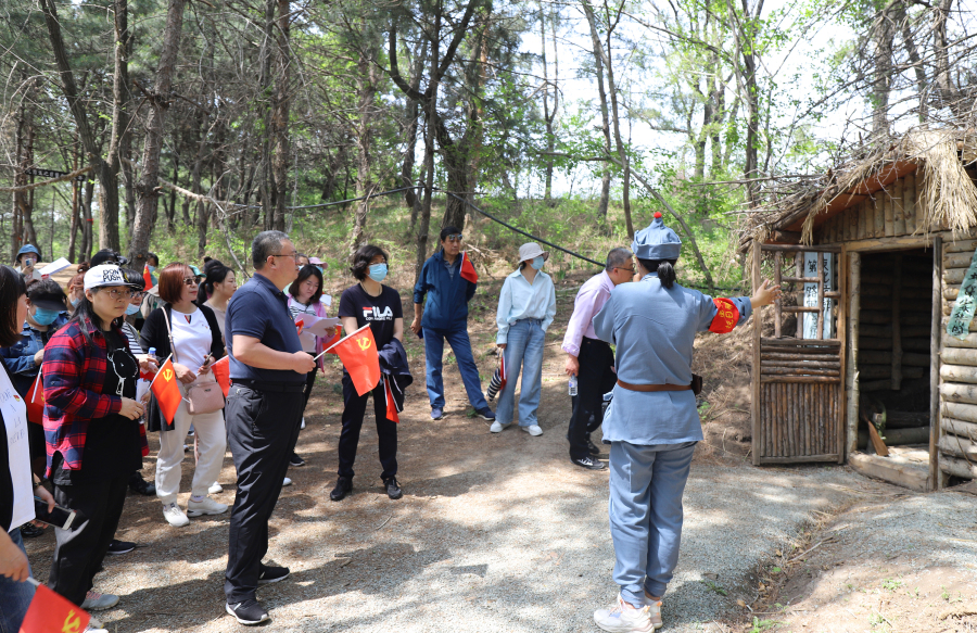 大家迈着整齐的步伐,来到东北抗联莲花岛红色教育基地,在抗联密营中,驻足在战壕、地道、马架子、抗联救护所等场景前,跟随讲解员详细了解东北抗日联军战士们的密营生活,感受到恶劣的战斗环境,深刻体会革命战士的爱国精神。