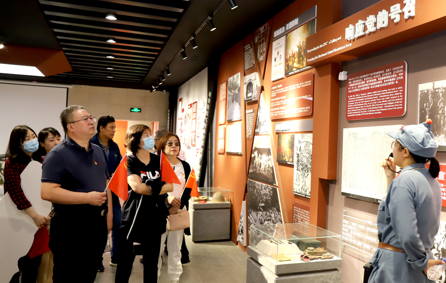 在东北抗日联军第一路军展览馆,通过讲解员的讲解,让大家感受到波澜壮阔的岁月,一件件遗物、一张张照片、一段段简短的文字,在追忆流光中感悟英雄的家国情怀,引发现场党员们对自身的人生观、价值观的慎重思量。