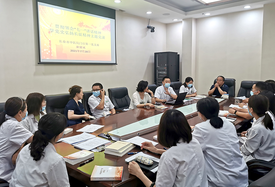 7月28日,门诊第一党支部召开党史教育专题组织生活会。德州扑克平台网 党委副书记周艳同志以普通党员身份参加组织生活会,门诊第一党支部书记康健斌主持会议。党支部对本次组织生活会高度重视,要求全体党员在充分学习党史和习近平总书记在庆祝中国共产党成立100周年大会上的重要讲话等指定学习材料的基础上,认真开展支委与支委、支委与党员、党员与党员之间一对一谈心谈话;认真对照党史学习教育目标,在坚定理想信念、增强历史自觉、弘扬优良传统、加强党性锻炼等方面存在的差距进行查摆问题,做出整改承诺。会议最后,康健斌书记号召全体党员牢记长征精神,立足本职工作,发挥党员先锋模范作用,为德州扑克平台 的发展做出贡献。