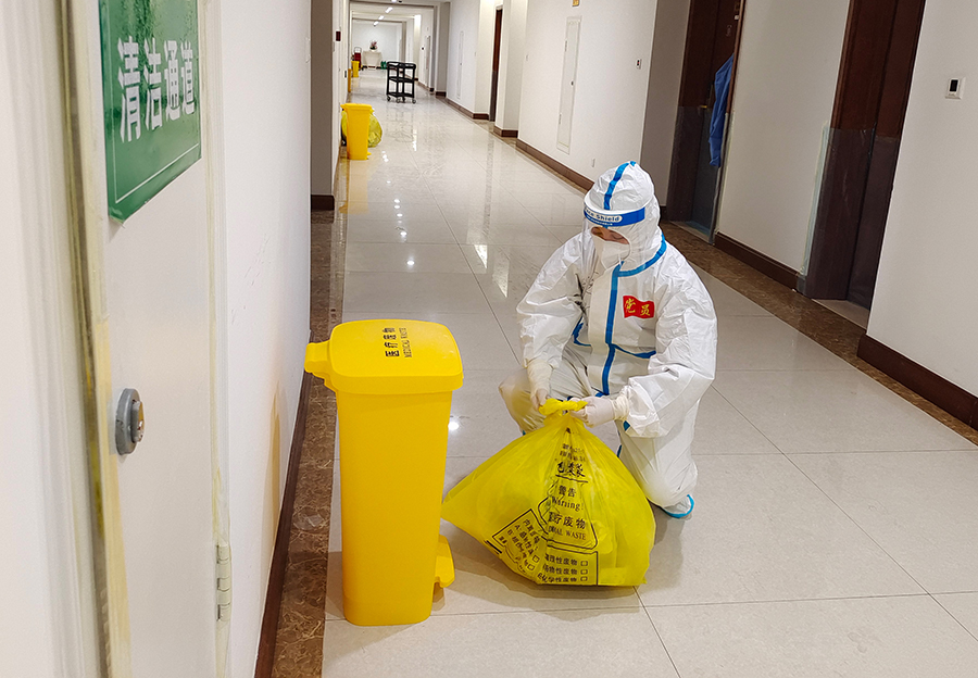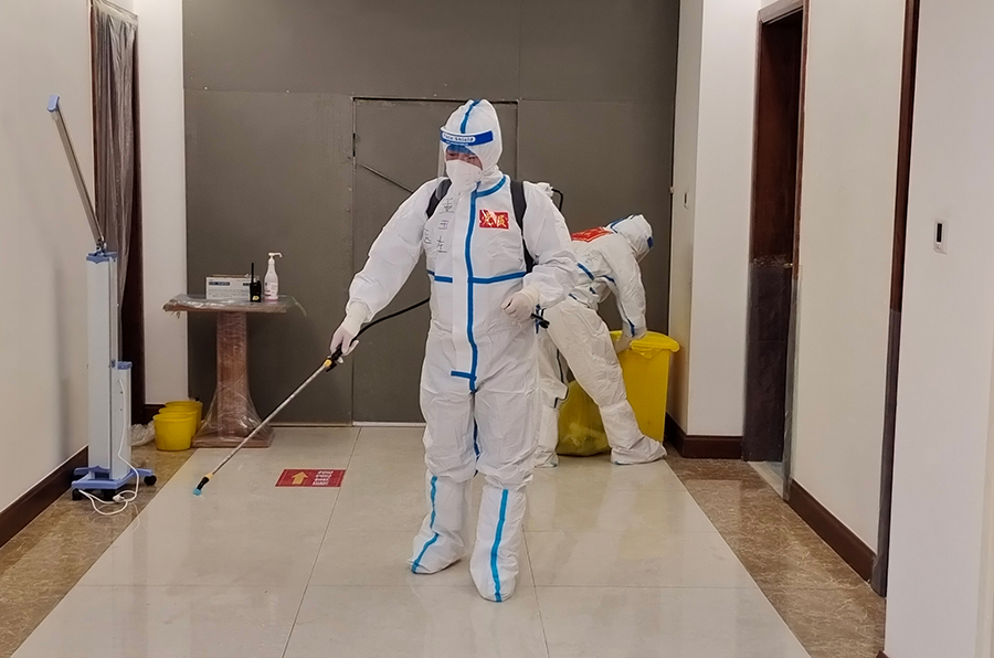 16日中午紧急集合,在经过整顿和培训后,医护团队于下午4点到达隔离点。此时,5辆载着密接人员的大巴车早已抵达。医护团队不得不一边熟悉现场环境,一边快速穿好双层防护服,在对房间进行消杀后,安排隔离人员尽快入住。在将265人分别安排在3栋楼中后,医护人员还详细登记了每个人的个人信息、联系方式、基础疾病等情况,并且为他们测体温、做核酸。当所有工作全部结束时,已经是17日凌晨3点了。