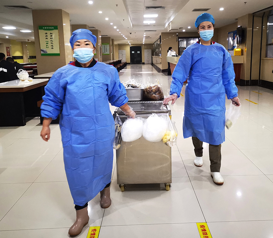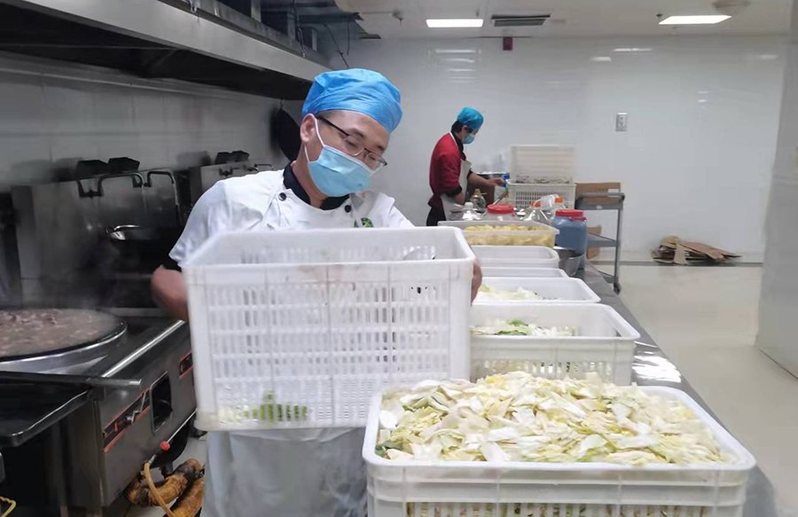 虽然只有18个人,在保障近千人一日三餐的同时,他们还要负责配送,因此工作量倍增。面对困难,大家不仅没有抱怨,在完成餐饮供应任务的同时,也没有放松疫情防控工作,全力保障大家的饮食安全。“疫情期间,我们是不能离院的,但看到患者吃得好,迅速康复出院,我们非常高兴,工作起来也更有干劲了。”总部伙食科科长王江说。