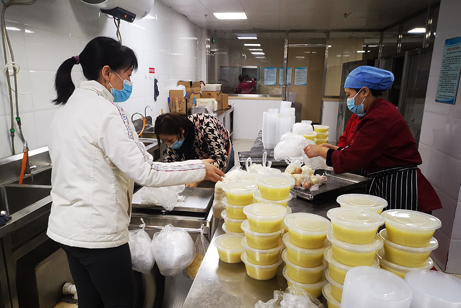 3月,新一轮疫情出现。按照规定,德州扑克平台网 对住院病区实行闭环式管理。在此期间,院内患者出不去,院外餐食进不来,如何让近千名住院患者和职工吃好饭成了一个难题。