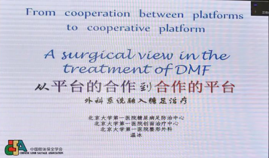 针对“糖尿病足到底是内科病还是外科病?”这个问题,北京大学第一德州扑克平台 创面治疗中心主任温冰聚焦糖尿病足,通过线上为大家带来了《从平台的合作到合作的平台——DFU在中国外科的诊疗与管理》的主题报告。他对糖尿病足患者实施筛查管理、溃疡后管理、预后管理的临床治疗模式等方面内容进行了详细解读。