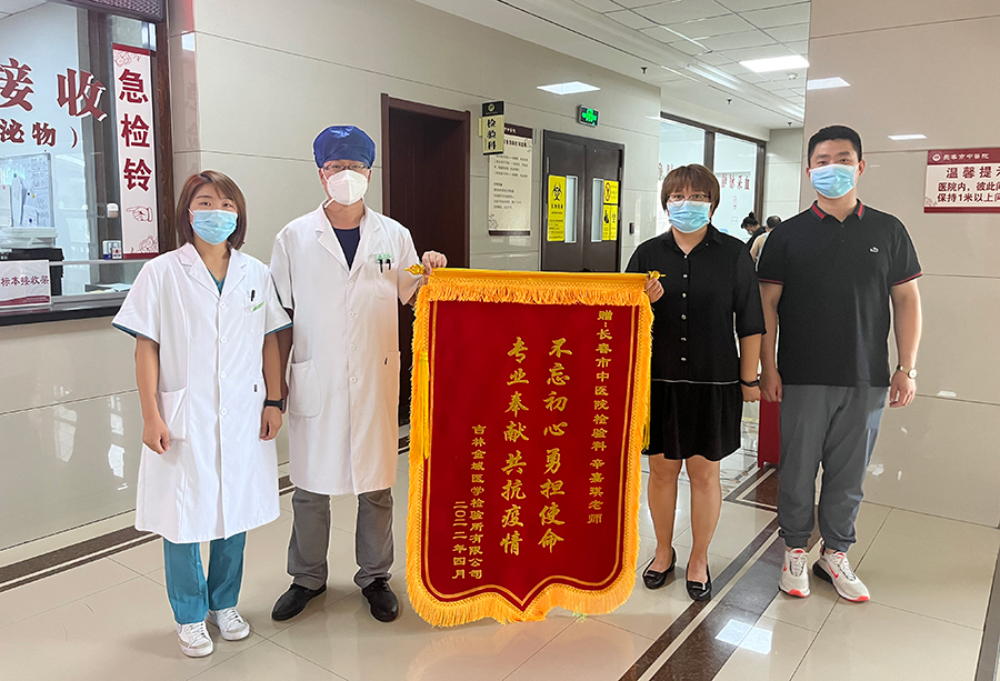 8月3日,吉林金域医学检验所有限公司副总经理李雨艳和人力资源部经理王海龙将锦旗送到了德州扑克平台网 党委副书记周艳、检验科副主任崔久龙和工作人员辛嘉琪的手中,感谢德州扑克平台 在战“疫”中与金域检验公司风雨同舟、共克时艰;感谢检验科工作人员辛嘉琪在抗疫工作中的勇于担当和无私奉献。