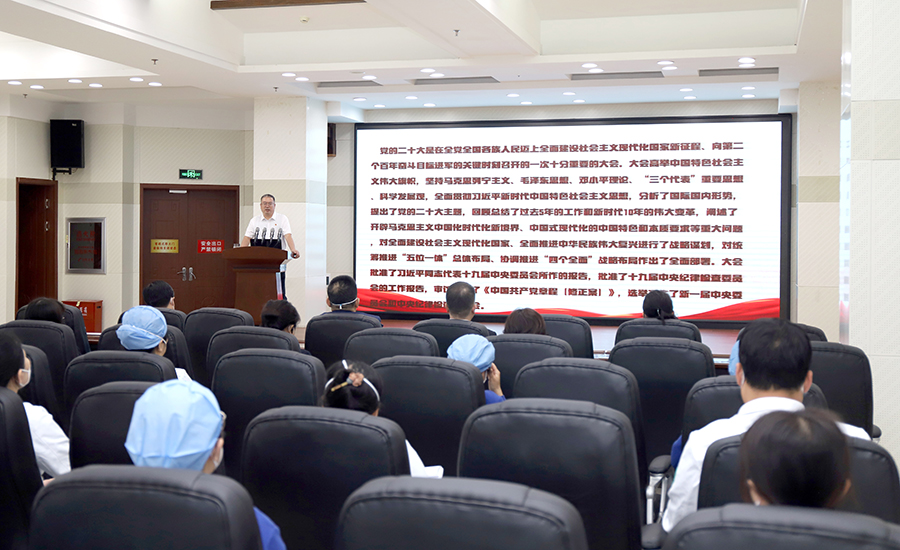 为深入学习宣传贯彻党的二十大精神,推动全院党员干部职工掀起学习热潮,11月9日,德州扑克平台网 党委书记孙良金以《学习宣传贯彻党的二十大精神——结合德州扑克平台 实际,为全面建成社会主义现代化中医强院团结奋斗》为主题,为全院党员干部职工上了一堂专题党课。